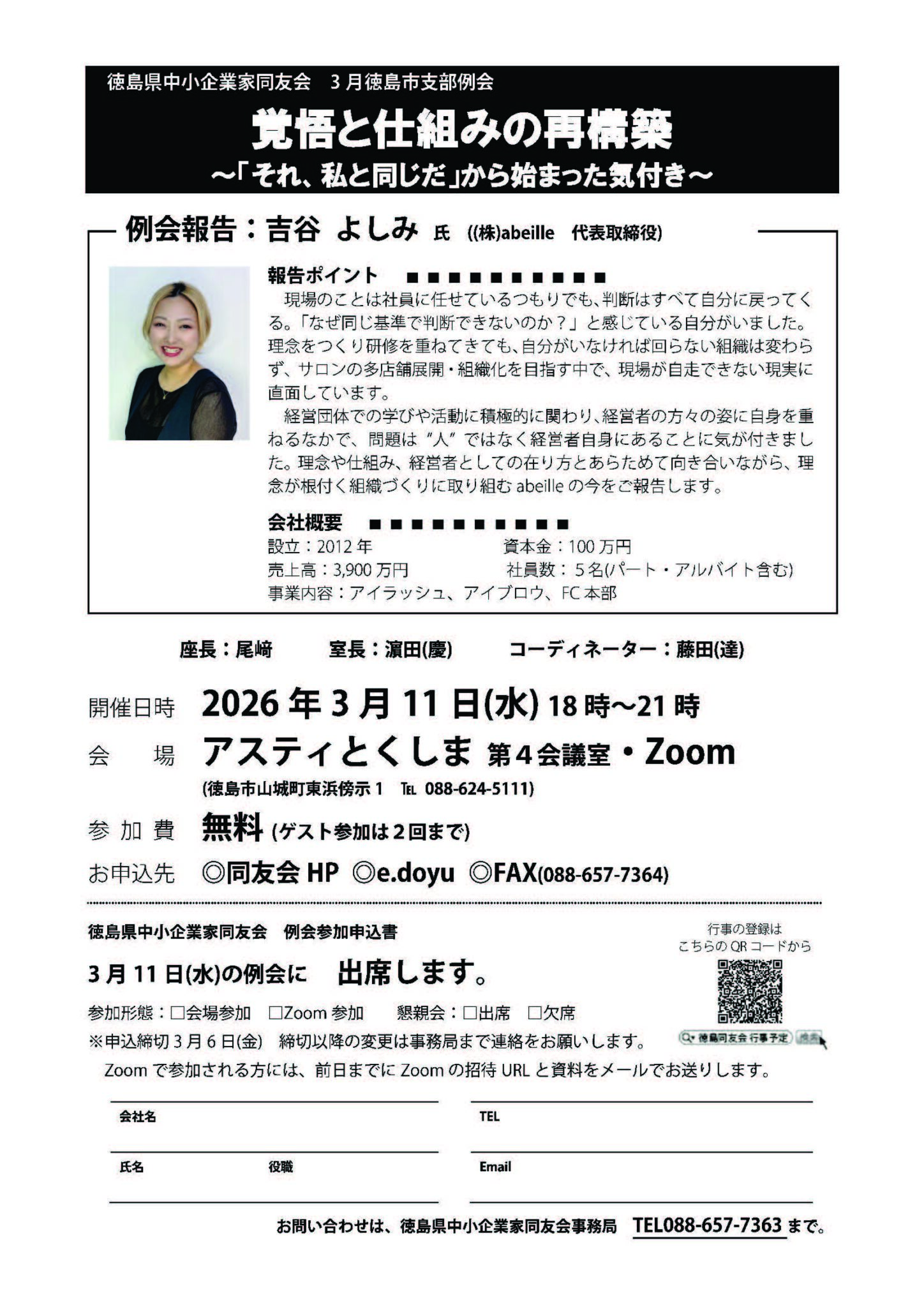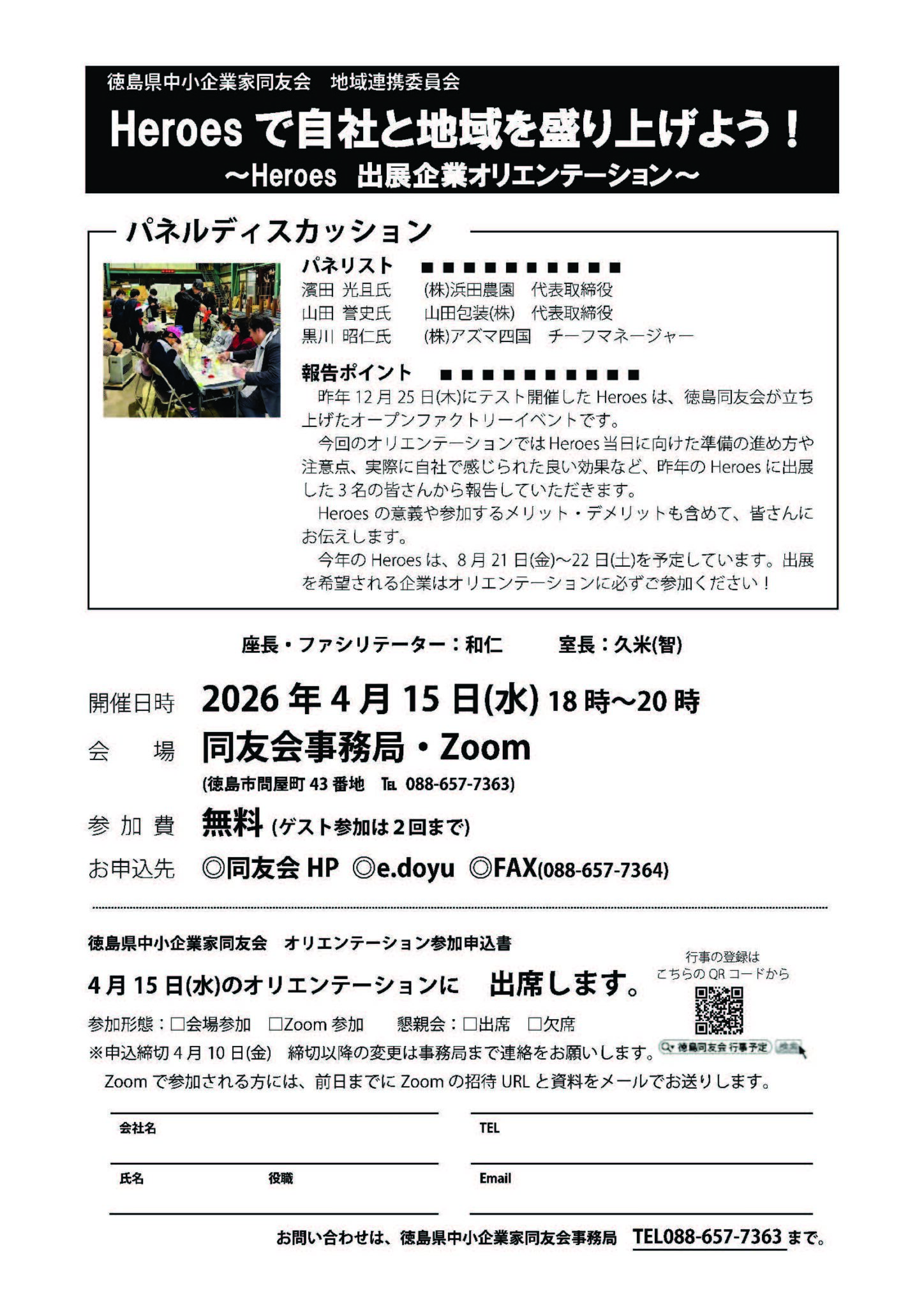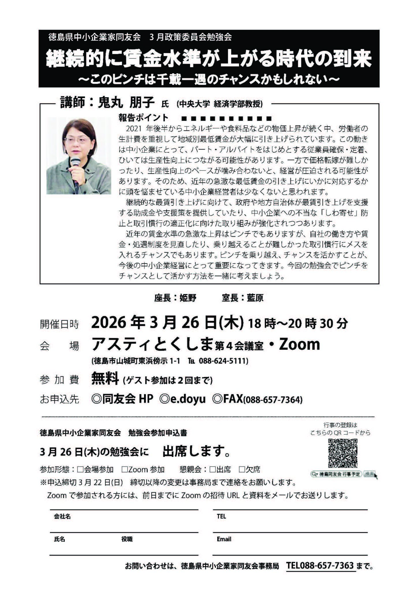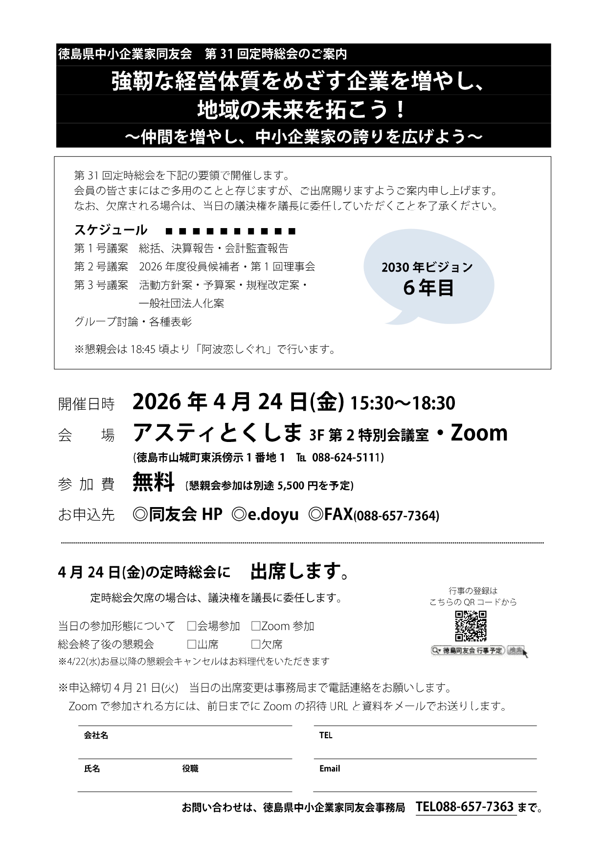 開催日時 2026年4月24日(金) 15:30~18:30会 場 アスティとくしま3F第2特別会議室・Zoom (徳島市山城町東浜傍示1番地1 ℡ 088-624-5111)